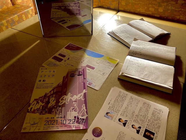 今回の第2回アーツ&スナック運動では、ガイトウスタンドを使って、当日の美しい上演風景の写真展示を行います。加えて、森鴎外の言葉がちりばめられた脚本も特別に公開します。